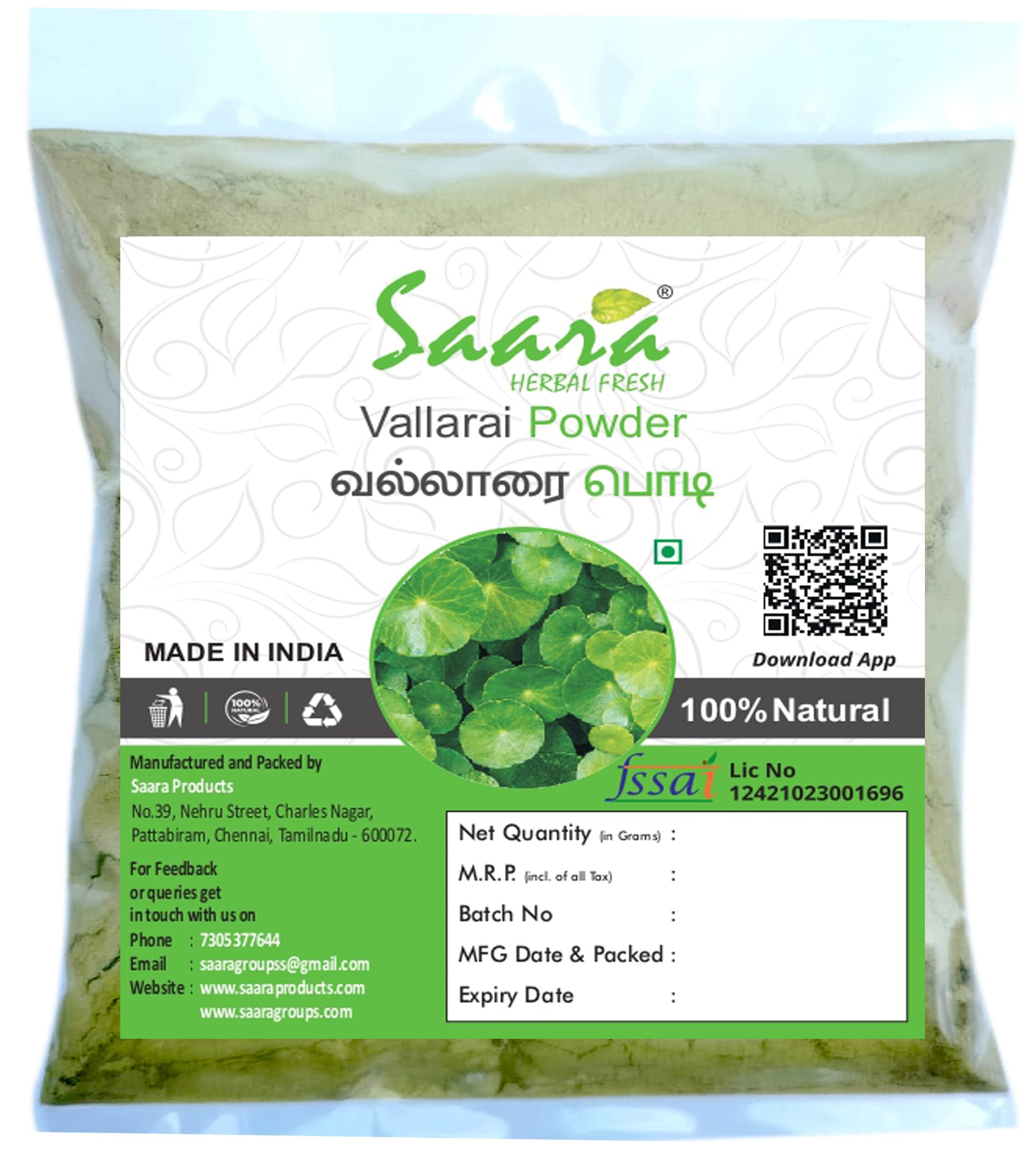- Made with Vallarai Keerai (Brahmi) – Known for boosting memory, concentration, and brain function; widely used in Ayurveda and Siddha medicine.